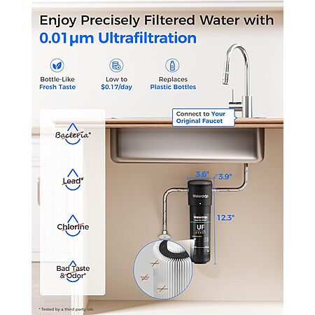 Prime Members: Waterdrop 10UA-UF 𝟎.𝟎𝟏 μ𝐦 𝐔π₯𝐭𝐫𝐚 𝐅𝐒π₯𝐭𝐫𝐚𝐭𝐒𝐨𝐧 Under Sink Water Filter for Bacteria Reduction, 11000 Gallons, Reduces Lead, Chlorine, Bad Taste & Odor, Direct Connect to Kitchen Faucet $30.00