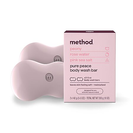 Method Bar Soap, Pure Peace, Pure Peace, Rose Water, Peonies + Pink Sea Salt notes, Plastic Free, 2 bars, 5oz each~$6.17 With S&S @ Amazon