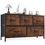 OLIXIS 5 Drawer Dresser Nightstand Classic Rust Brown - $35.97