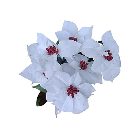 - Realistic white velvet petals arranged in a full poinsettia bunch for a bright and natural holiday display.