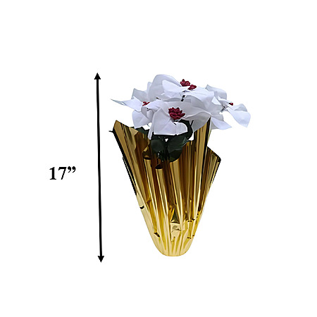 About this item- Holiday Time Artificial Christmas Poinsettia with Wrapped Base – 17" – White and Gold – a festive and elegant holiday décor accent.