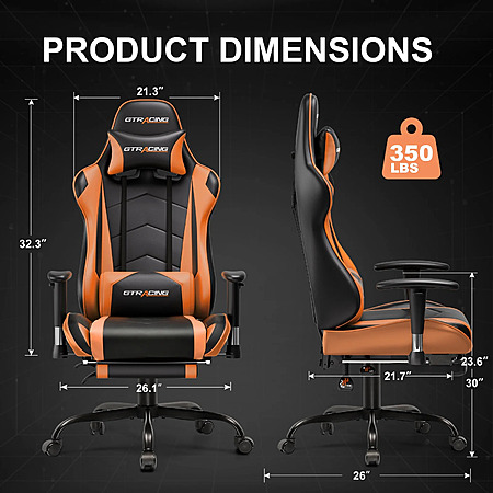 GTRACING Gaming Chair Office Chair PU Leather with Footrest & Adjustable Headrest, Orange