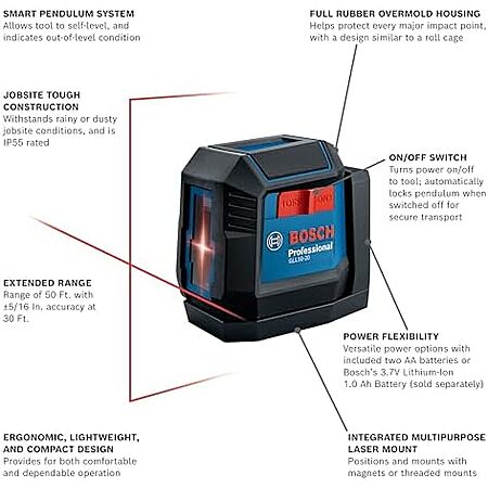 $42.47 | BOSCH GLL50-20 50 Ft Self-Leveling Cross-Line Laser at Amazon