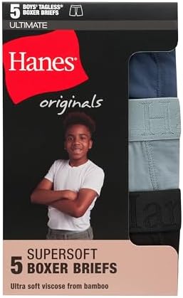 $11.69 | 5-Pack Hanes Originals Ultimate Supersoft Boys' Boxer Brief Underwear at Amazon