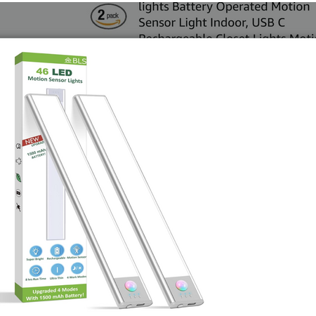 BLS Under Cabinet Lights-2pack, 46 LED lights Battery Operated Motion Sensor Light Indoor $10