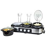 Model: HomeCraft Nostalgia Stainless Steel 3-Station 1.5-Quart Oval Slow Cooker Buffet, With Lid & Spoon Rest, Adjustable Heat Control, Perfect for Parties, Holidays, Families