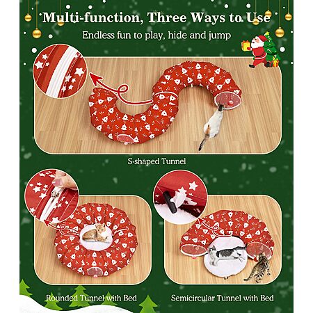 $8.99 - Pawaboo Cat Tunnel Bed Under Christmas Tree, 35.4'' Christmas Cat Toy Circle Tunnel with Ball,Cats Tunnels Christmass Trees Skirt