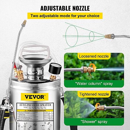 - Adjustable Nozzle – Premium brass nozzle switches from direct stream to fine mist; flexible 3 ft hose and 12" wand allow spraying up to 13–16 ft.