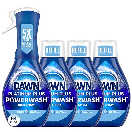 Dawn Platinum Powerwash Dish Spray, Dish Soap Liquid, Fresh Scent Bundle, 1 Spray (16oz) + 3 Refills (16oz each)(Pack of 4) $12 or less CLIP Q and S&S YMMV