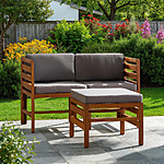 Walker Edison Sanibel 3-Piece Modular Acacia Chairs and Ottoman in Brown/Grey. Free Shipping $145