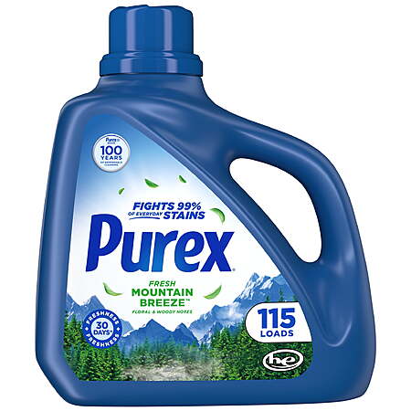 | Product Description: | Purex Fresh Mountain Breeze Liquid Laundry Detergent fights 99% of everyday stains while delivering up to 45 days of lasting freshness out of storage. With 4-in-1 cleaning power—brightening, whitening, powerful clean, and tough stain removal—this detergent provides a dependable clean you can trust. Safe for all laundry needs, Purex works in all washing machines, including high-efficiency (HE) models, and is effective in any water temperature. Each 150 fl oz bottle provides up to 115 medium loads, giving families long-lasting value at an affordable price. Trusted since 1922, Purex brand continues to deliver reliable laundry care for every household. Purex Fresh Mountain Breeze liquid laundry detergent fights 99% of everyday stains and provides 45 days of lasting freshness out of storage 4-in-1 cleaning power: brightens, whitens, powerful clean, tough on stains, and provides lasting freshness Works in all machines, including high-efficiency (HE) washers, and effective in any water temperature Each 150 fl oz bottle provides 115 medium loads—long-lasting value and dependable results Purex brand has been providing trusted laundry solutions to families since 1922 Packaging may vary for the final product shipped to you Bottle contains 50% recycled material excluding cap, spout, and labels. |