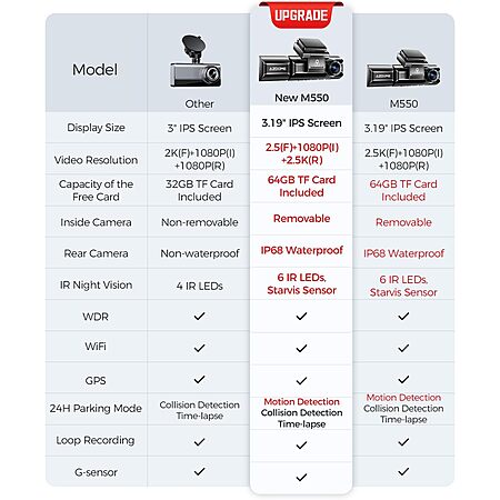 AZDOME M550 3 Channel (4K + 2x 2.5K) WiFi / GPS Dash Cam w/ 3.19" IPS Screen $69.60 + Free S/H