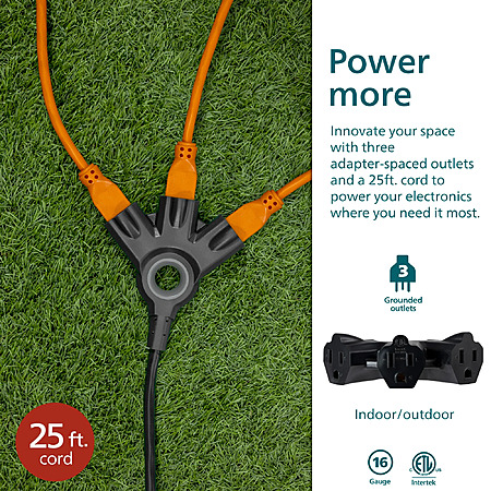 25' Philips EZGrip 16 AWG 3-Outlet Extension Cord (Black, Indoor/Outdoor) $22.97 + Free S&H w/ Walmart+ or on $35+