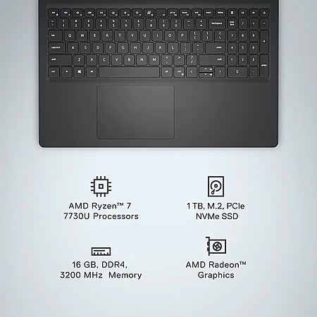 Open Box/Excellent Condition: Dell Inspiron - 15.6" 2K Touchscreen Laptop, AMD Ryzen 7 7730U, 16GB Memory, 1TB Storage - Carbon Black for $411.99