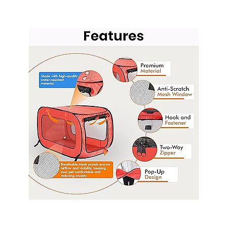 Beatrice Home Fashions Portable Collapsible Pop-Up Kennel (32.5" L x 19.5" W x 19.5" H, Red) on sale for