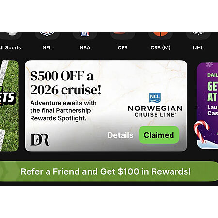 In the DraftKings app, I opted in on the offer for $500 off a 2026 cruise with Norwegian. When I called my cruise consultant a few days later, that $500 coupon was on my account. Both NCL and DraftKings' emails were registered to the same email address. But I booked my cruise and got $500 off.