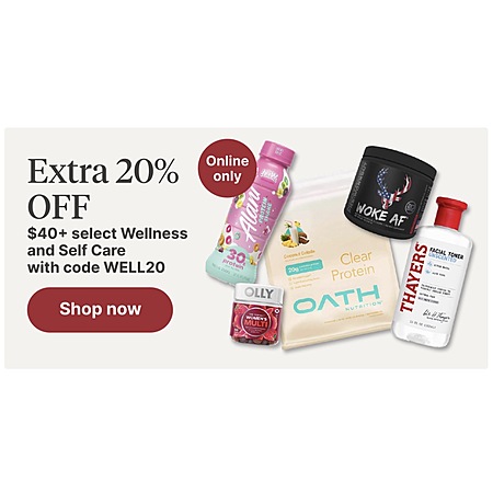 Walgreens 20% OFF $40+ select wellness and self-care with code WELL20 Online Only