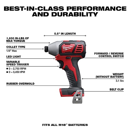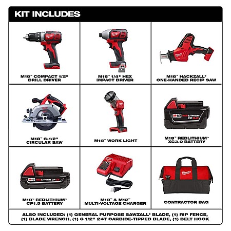 Milwaukee M18 18V Lithium-Ion Cordless Combo Kit (5-Tool) with (1) 3.0Ah and (1) 1.5Ah Battery, (1) Charger, (1) Tool Bag $299.99