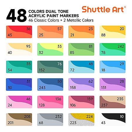 Model: Shuttle Art 48 Colors Dual Tone Acrylic Paint Markers, 24 Pack Acrylic Paint Pens Set for Rock Painting, Ceramic, Wood, Canvas, Glass, Stone, Fabric, Card Making, DIY Crafts & Art Supplies