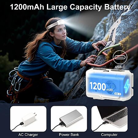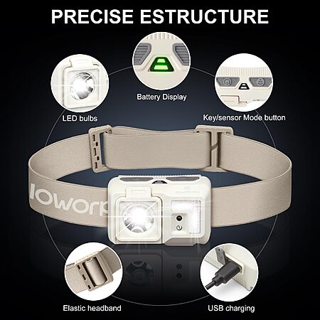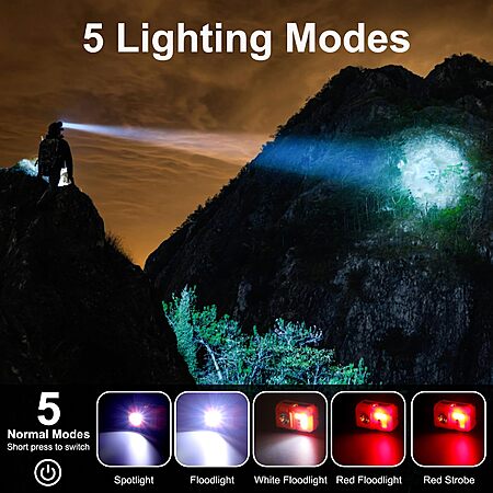 - Motion Sensor & 5 Lighting Modes: The hands-free headlamp is equipped with a motion sensor function, simply wave your hand to turn the light on/off, which is more convenient and avoids soiling the headlamp when your hands are dirty. The 5 light modes can be cycled through with a single button, easily meeting different lighting needs such as campsite setup, tent reading and night hiking.