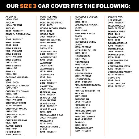 - FITS FULL-SIZE SEDANS WITH EASE: Sized at 200" L x 60" W x 51" H to cover a wide range of popular makes and models