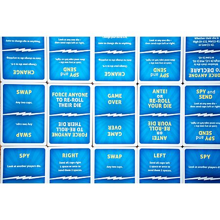 - HOW TO PLAY: Each player shakes their cup with d12, peeking at the die value. Play starts with drawing a card from the pile - the player can take the action on the card (Spy, Swap, Re-roll, Reveal) or choose to flip the High/Low token. Play continues around the table until the end round card appears from the draw pile - the player with either the highest or lowest dice value (based on the token) wins the round!