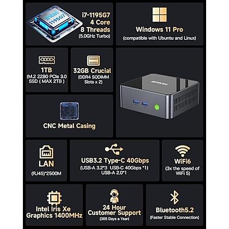 GMKtec-US via Amazon [amazon.com] has GMKtec Mini PC Intel Core i7-1195G7 32GB DDR4 1TB SSD Desktop Mini Computers for $429.99.