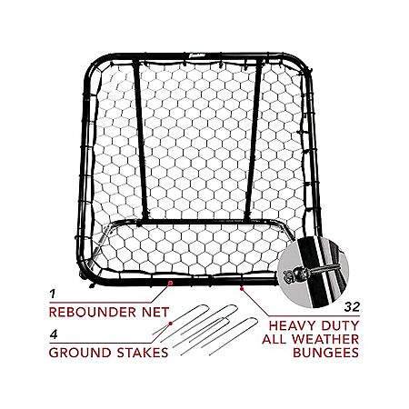 Franklin Sports' 3'x 3' Basketball Rebounder is a versatile training aid that allows players to practice a variety of skills with ease. The strong, high-tension netting provides a consistent, powerful bounce back, while the heavy-duty steel frame provides durable, long-lasting quality to perform season after season. Plus, the adjustable angle return is perfect for simulating receiving lobs, bounce passes, chest passes, or anything in between. This net is perfect for practicing catch and shoot skills without having to spin the ball back to yourself. Even practice catching the ball in the low post, shooting free throws, passing accuracy and more! You can even use this net to help you with your other sports as well! Practice lacrosse shooting accuracy, soccer passing, or even baseball fielding drills with ease. The rubber feet on the bottom of the rebounder make it safe and easy to use on wood floors, concrete, grass, or anywhere else you play. And when you're done, simply fold it flat for easy and convenient transport and storage. Help your young athlete develop the tools they need to be successful and hone their skills with this Franklin Sports Rebounder today!