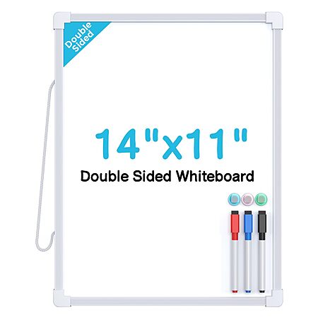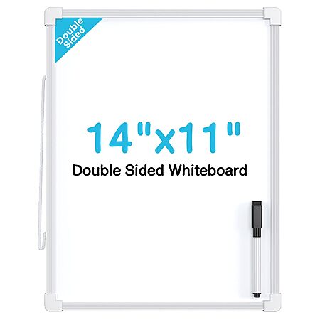 MaxGear Small Dry Erase Board, 14"x11" Double Sided Hanging Whiteboard for Wall, Mini White Board with 3 Dry Erase Markers and 3 magnets $6.50 FS Prime AMZ