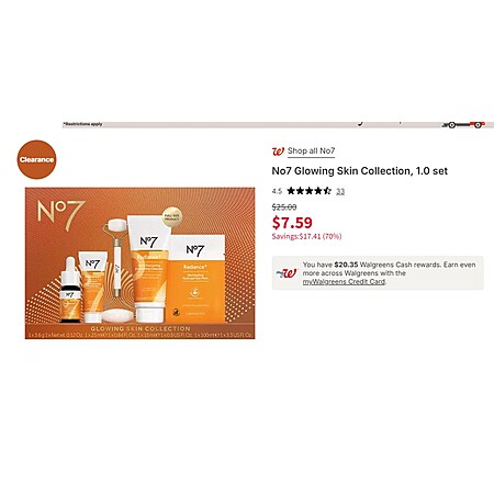 No7 Glowing Skin Collection, 1.0 set Reg $25 Now $7.49
