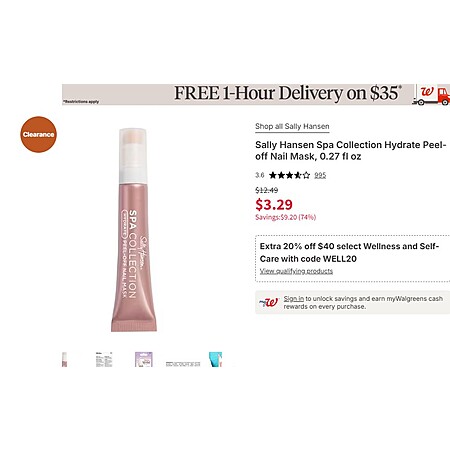 Sally Hansen Spa Collection Hydrate Peel-off Nail Mask, 0.27 fl oz Reg $12.49 Now $3.29