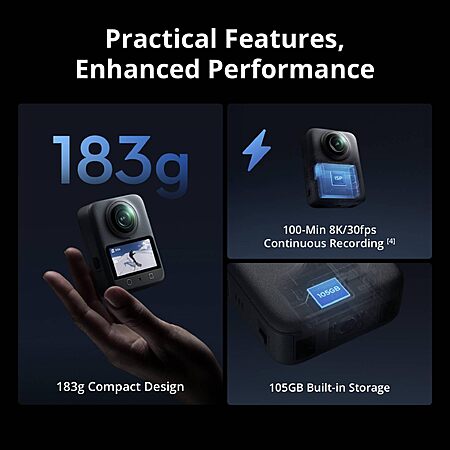 DJI Osmo 360 Camera Standard Combo, Waterproof 360° Action Camera with 1-Inch 360° Imaging, Native 8K 360° Video, 105GB Built-in Storage, 120MP 360° Photo $384.99