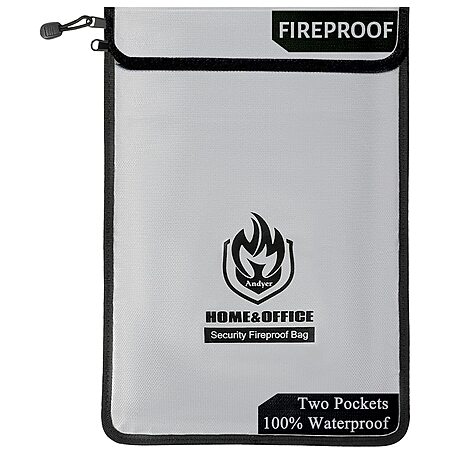 $15.99*:Andyer Upgraded Fireproof Document Bag, 15”×11” Waterproof Money & Document Organizer with Zipper-0.6"L x 11"W x 15"H