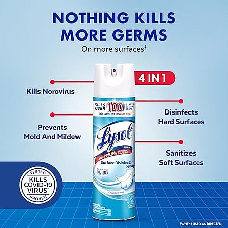 [S&S, AC] $36.20* | 4 × 2-Pack 19-Oz Lysol Disinfectant Spray (Crisp Linen) ($9.05 each) + $15 credit at Amazon