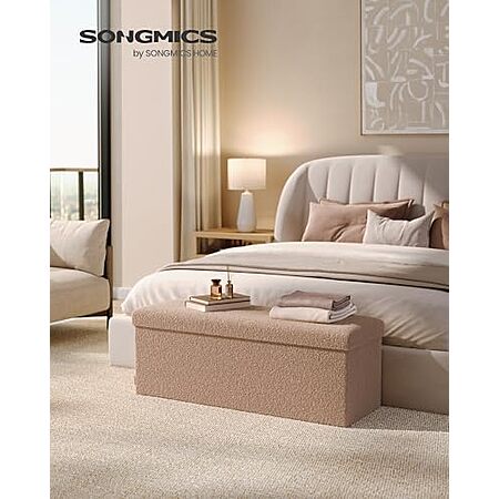 Model: SONGMICS Storage Ottoman Bench, Storage Chest, 15 x 43 x 15 Inches, Foot Rest Stool, End of Bed Bench, Load up to 660 lb, for Living Room, Bedroom, Entryway, Camel Brown ULSF097K01