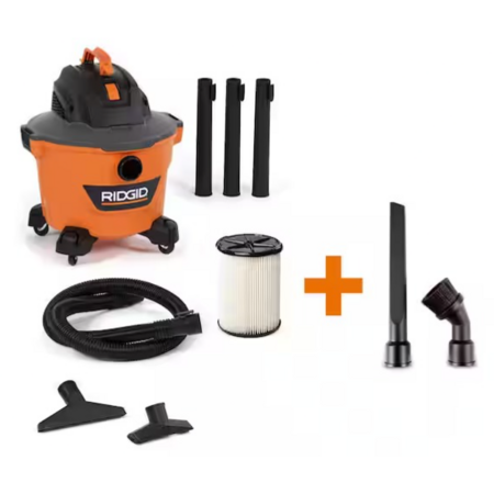 RIDGID 4.5 Gal. 5.0 Peak HP PRO PACK Shop Vacuum Wet Dry Vac with Fine Dust Filter, Expandable Hose and Accessories WD4522 & more $69.97