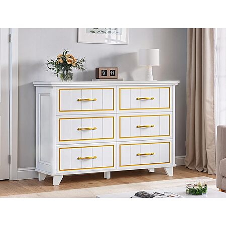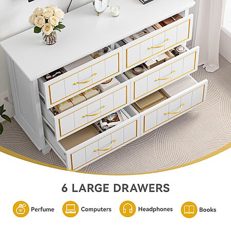 - Efficient Storage Solution: This wooden dresser TV stand, equipped with 6 drawers, efficiently arranges playthings and books; The wide wooden top accommodates a lamp or scent diffuser, creating a cozy and inviting atmosphere in your room