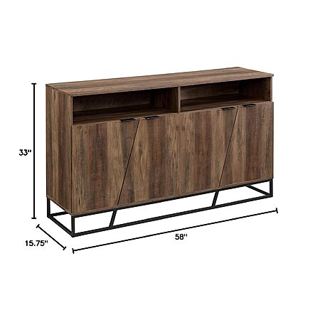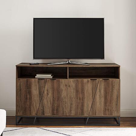 58" Walker Edison Angled Door Cabinet-Sideboard-Buffet w/ Open Shelf Storage (Rustic Oak) $61.99 + Free Shipping