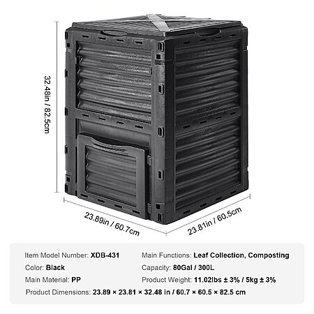 amazon.com has VEVOR Garden Compost Bin 80 Gallon, BPA Free Composter, Large Capacity Outdoor Composting Bin with Top Lid and Bottom Door, Easy Assembling, Lightweight, Fast Creation of Fertile Soil on sale for $36.59. FREE delivery.