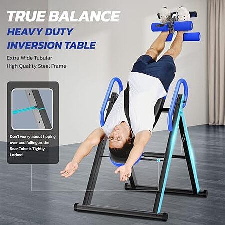 Model: YOLEO Gravity Heavy Duty Inversion Table with Headrest & Adjustable Protective Belt Back Stretcher Machine for Pain Relief Therapy (Blue02)