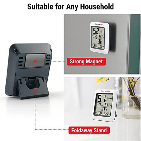 - Healthier home & environment: Thermometer hygrometer with temperature and humidity monitor ensures proper indoor humidity control has important skin, allergen and other health benefits; Can also be as refrigerator thermometer, freezer thermometer, reptile thermometer, soil thermometer, humidor hygrometer, cigar hygrometer and more