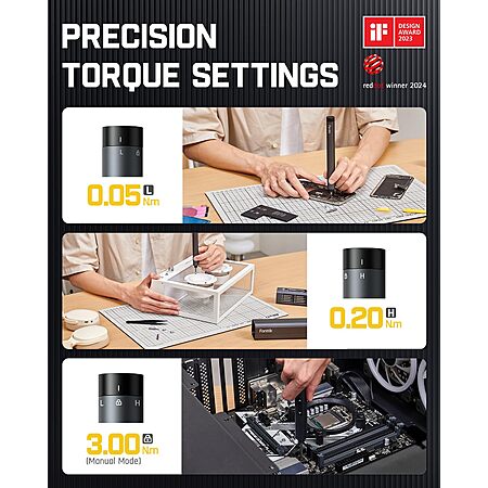 - Award-Winning & Media-Endorsed: Winner of the 2023 iF Design Award and 2024 Red Dot Design Awards, and featured by top media. This precision electric screwdriver is a go-to for DIYers, innovators, and idea makers who value both style and performance.