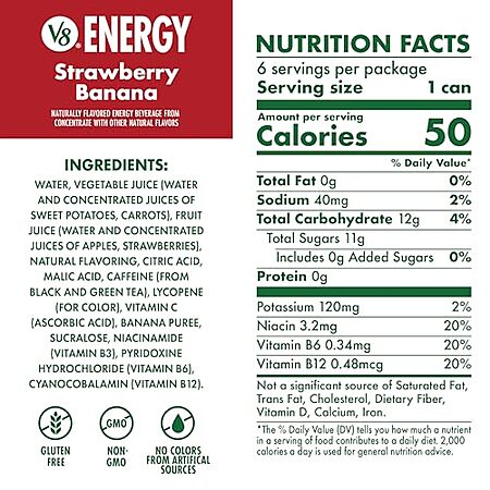 [S&S, AC] $16.46 | 8 × 6-Pack 8-Oz V8 Energy Drink (Strawberry Banana) ($2.06 each) at Amazon