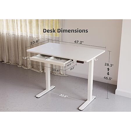 YDN Standing Desk with Drawers, 48 x 24 Inch Electric Adjustable Height Stand Up Desk, Sit Stand for Home Office, White $74.82
