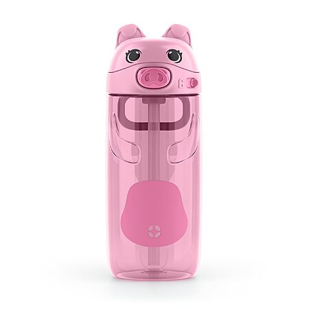 Ello Ellies 16oz Plastic Kids Water Bottle with Straw and Built-in Carrying Handle and Leak-Proof Locking Lid for School backpack, Lunchbox and Outdoor Sports, Pig $7.87