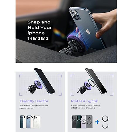 LISEN MagSafe Phone Car Mount for Vent or Dashboard (Purple or Silver) $6.99 + Free Shipping w/ Prime