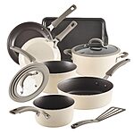 10-Piece Rachael Ray Nonstick Cookware Pots & Pans Set (Almond or Gray)