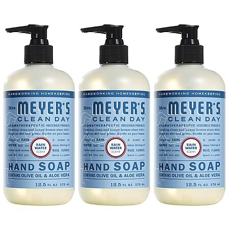 3-Pack 12.5-oz Mrs. Meyer'S Clean Day Hand Soap, Rain water + $1.02 promo credit $9.18 or less w/ S&S @Amazon