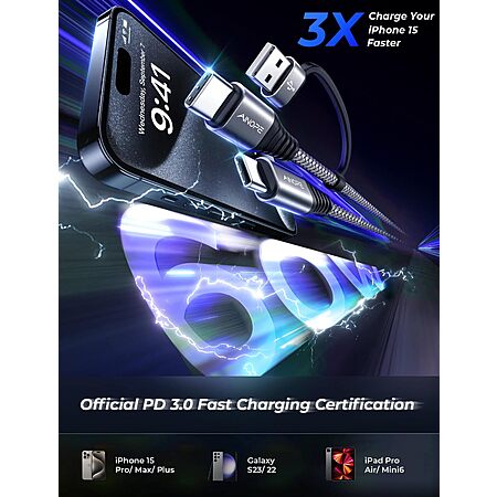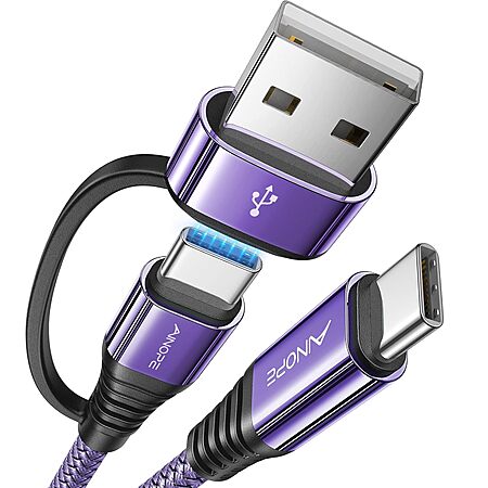 AINOPE 60W USB C to USB C Cable w/ USB A Adapter (Various Colors & Lengths): 6' $4.79, 1' $4.39 & More + FS w/ Prime