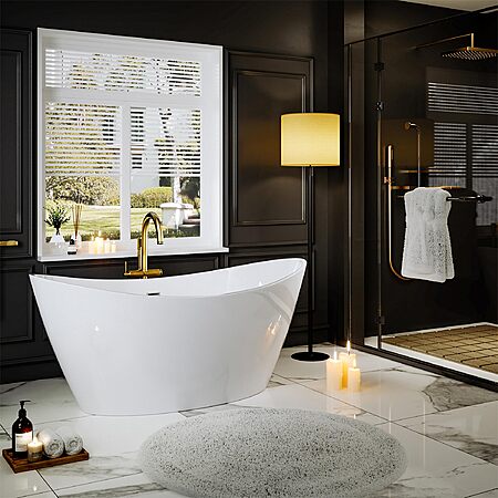 Features:- Certified Safety & Durability: This cUPC certified freestanding bathtub meets rigorous safety standards, ensuring a high-quality soaking tub built to last with stain-resistant acrylic reinforced by fiberglass